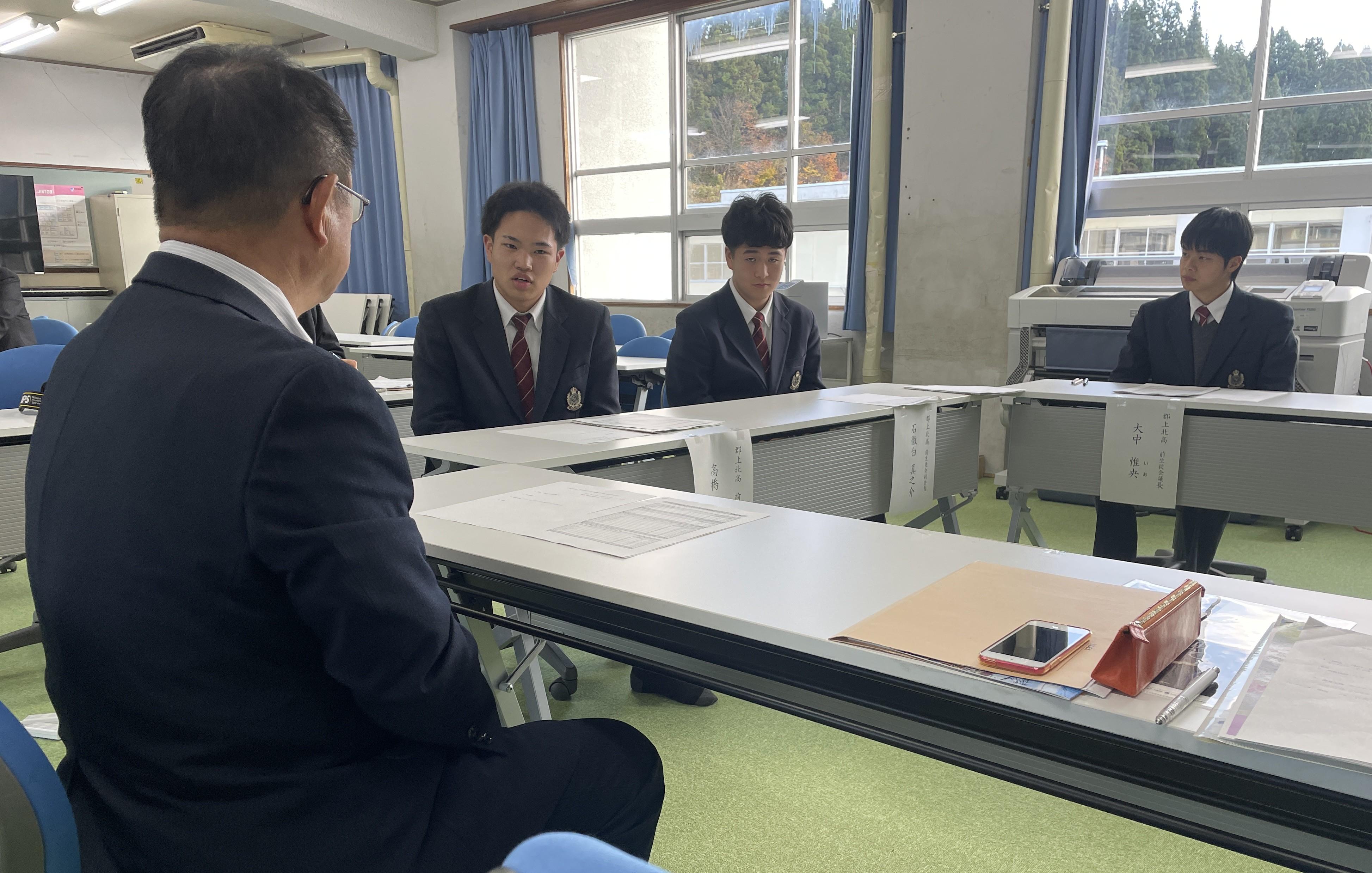郡上市の未来を担う高校生との懇談会を、郡上北高等学校の生徒の皆さん10名と郡上市長および郡上市教育長が行いました。