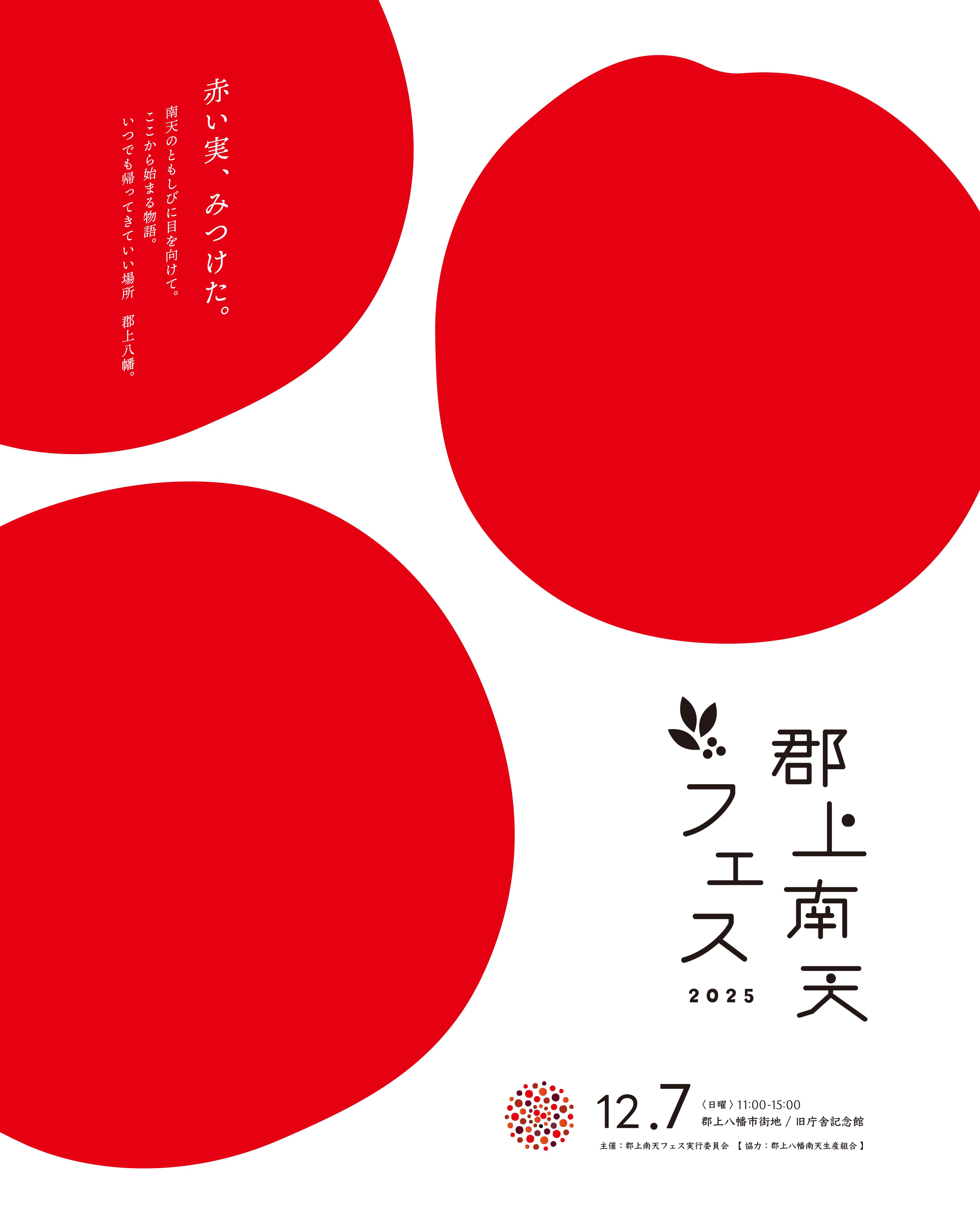 今年で4度目の開催となる「郡上南天フェス」(主催:郡上南天フェス実行委員会・協力:郡上八幡南天生産組合)が令和7年12月7日(日)に開催されます。