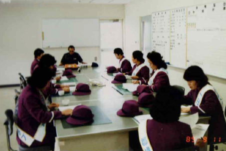 1989(平成元)年9月11日、当時の郡上郡婦人防火クラブ連絡協議会の役員の方々10名が、八幡町小野地内、郡上広域連合消防本部(現在、郡上市消防本部)にて消防長より1日婦人消防官の任命を受けて、郡上管内の防災に関する状況の確認や各部署を視察、八幡町内の防火査察に同行し、防火防災に関する研修に取り組みました。 |